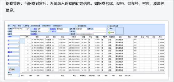 鋼卷作為原材料,價值高,在入庫時必須做好原始信息的錄入,便于后續(xù)的追蹤。。