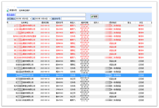 鋼材成品的價值高,而且運輸成本也不低。為確保裝車前后的物流信息準(zhǔn)確無誤,可以支持對物流車輛的出入進行管理,以及訂單與車輛、司機進行關(guān)聯(lián)。圖1是提貨車輛的排隊信息,有車牌號、排隊狀態(tài)、提貨單位。圖2是司機攜帶的出門單,憑出門單開車出去。