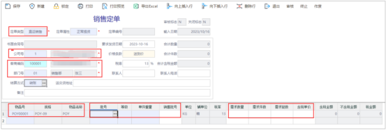 手工或按合同維護(hù)銷售定單,定單主要包含客戶、價(jià)格條款、結(jié)算方式、交貨日期、以及物品名稱規(guī)格、批號、數(shù)量、單價(jià)、金額等信息。
